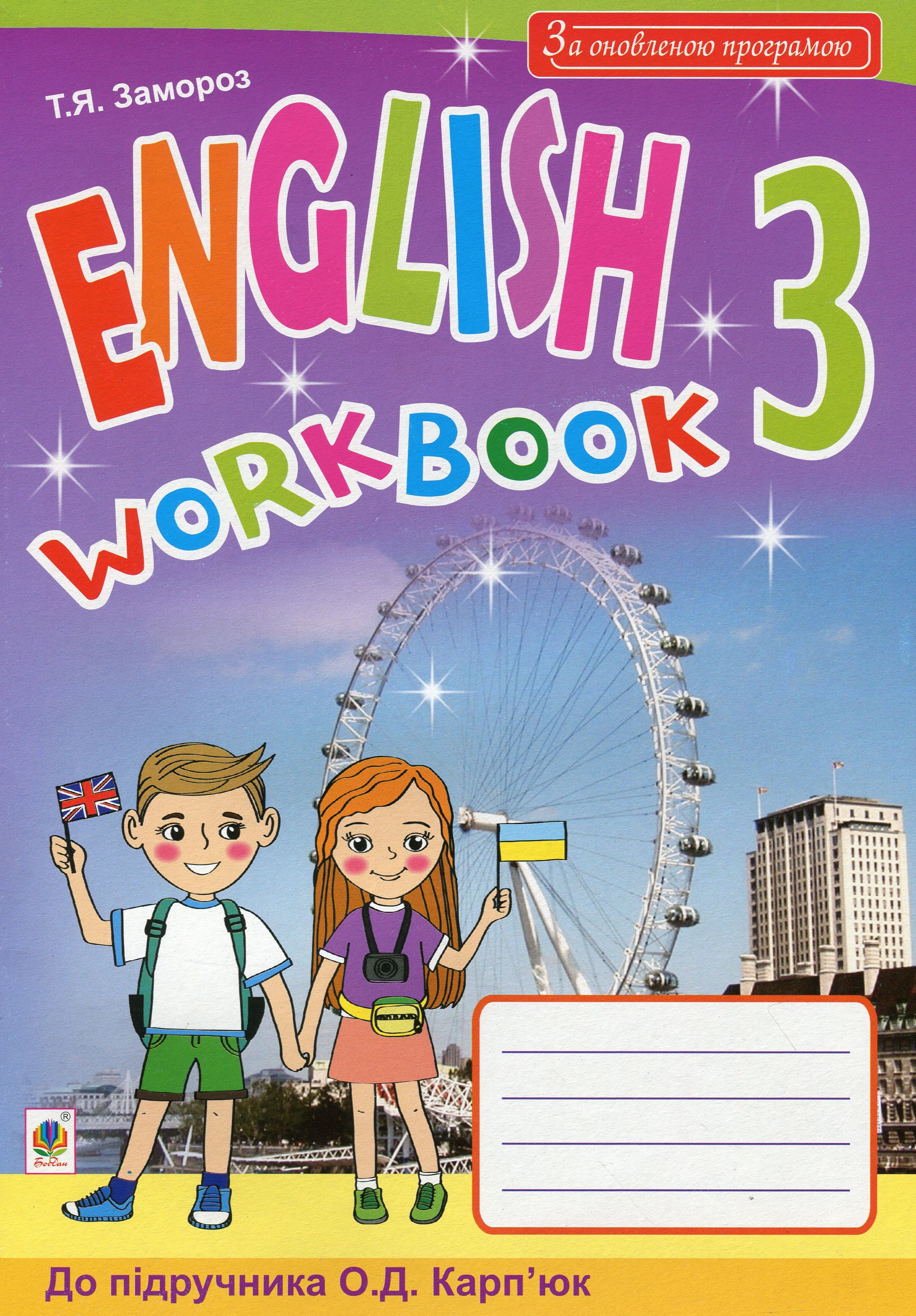 Робочий зошит з англійської мови для 3-го класу загальноосвітніх навчальних закладів укладено відповідно до оновленої програми Міністерства освіти і науки України та підручника для 3-го класу (Карп’юк О.Д. Англійська мова: підручник для 3 класу загальноосвітніх навчальних закладів).