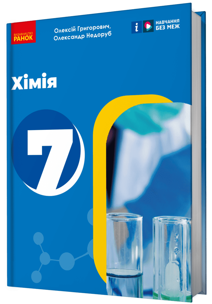Підручник містить зрозумілі та доступні пояснення основ хімічних процесів, практичні приклади, які допомагають візуалізувати й застосовувати вивчений матеріал у житті.