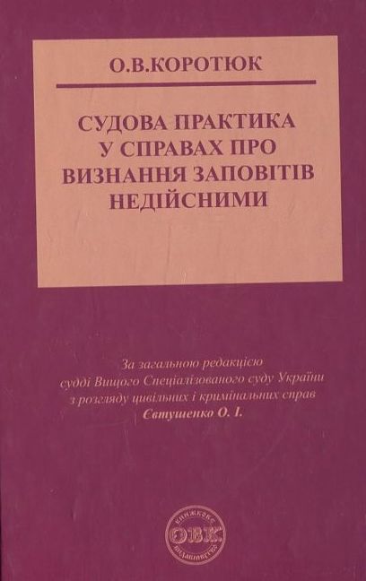 У данному виданні представлено зібрання судової практики у справах про визнання заповітів недійсними, надано коментарі і зроблено узагальнення умов, які тягнуть за собою їх недійсність. Видання розраховане на практикуючих юристів, адвокатів,суддів,працівників органів прокуратури і внутрішніх справ, органів нотаріату , студентів і викладачів вищих навчальних закладів України, а також може бути корисним широкому колу громадян, хто цікавиться питаннями складання заповітів і визнання їх недійсними.